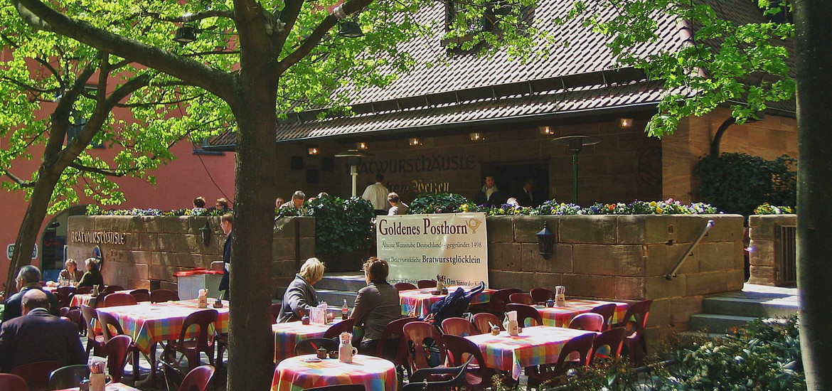 I was so happily surprised, though, with Nuremberg – it turned out to be one of the most beautiful and romantic cities I’ve ever visited. The Danube river winds through the center of the pedestrian zone, which, on that Friday night, was alive with people. People strolling along the riverfront on both sides, criss-crossing the bridges from isles to banks, enjoying each others’ company. People eating at the numerous outdoor cafes, or enjoying an Eis (ice cream) after their meal. People checking out modern storefronts next to half-timbered houses with wood beams tinted with oxblood, a wood preservative and termite repellant of earlier times. We ate delicious Nuremberger sausages and pretzels at the Bratwursthausle near St. Sebald in the Altstadt (old town):