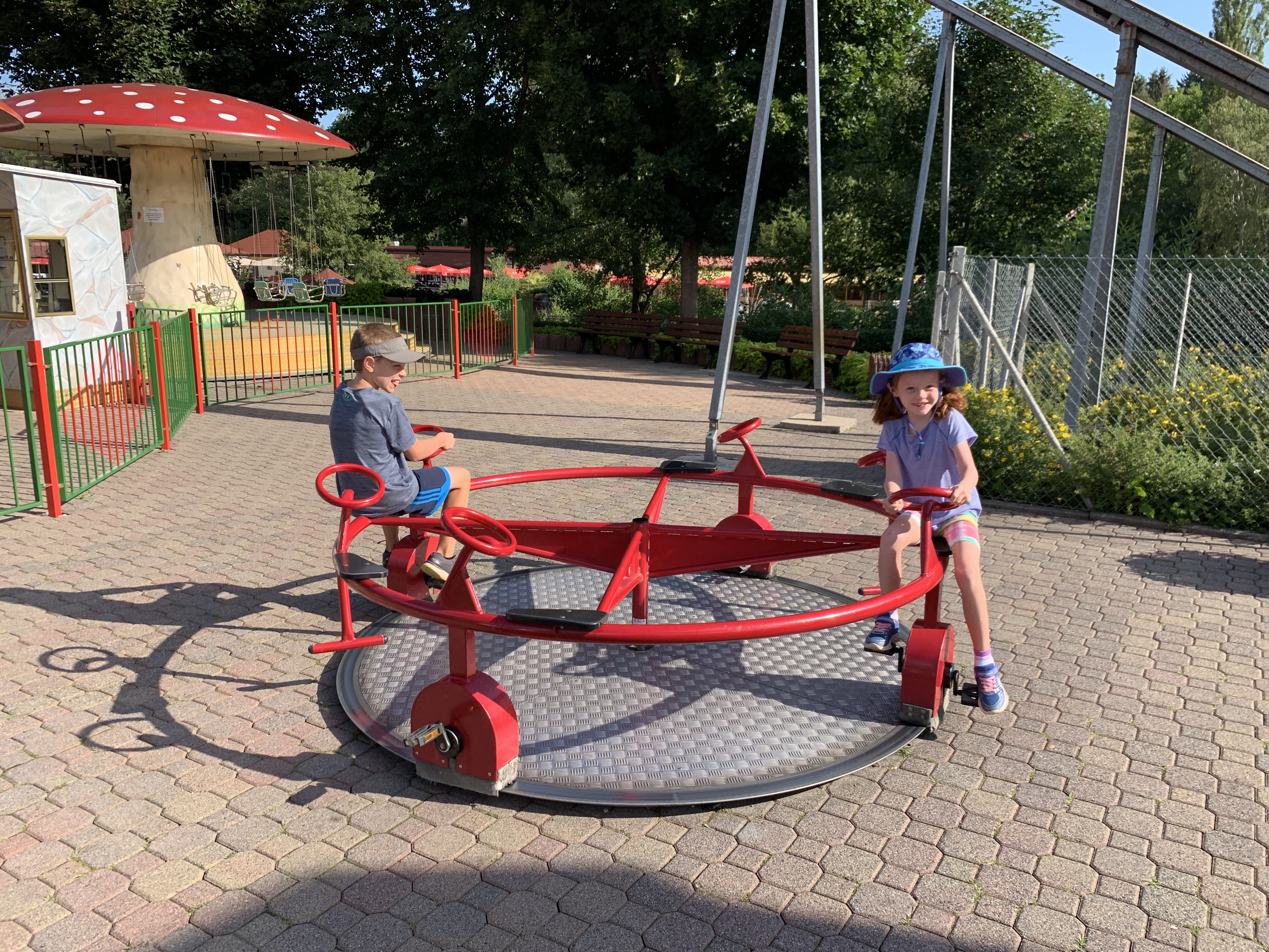 And in between all the rides, there’s awesome playground equipment that’s long been outlawed in the US (I didn’t get great pics of all of it, but there were the rider-operated merry-go-rounds, a trampoline park, and ziplines as well!):