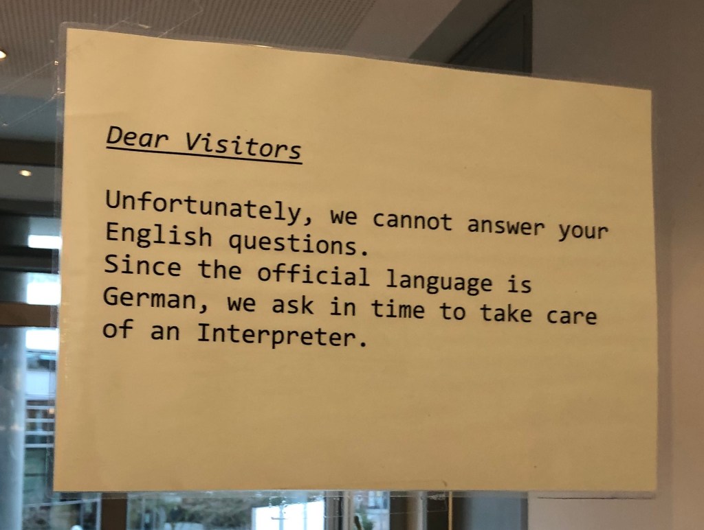 I am happy to report, though, that one of the last immigration ‘to-do’ items on our list – obtaining our German drivers’ licenses – was a raging success. Getting these was probably one of the greatest achievements of my life, because this is the sign they post on the front door of the Licensing Bureau: