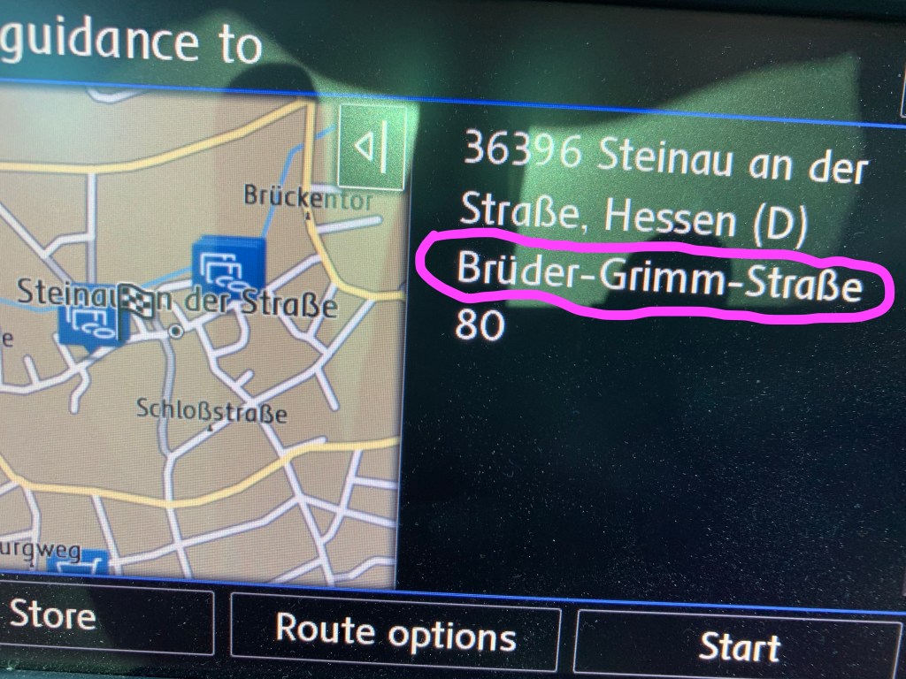 Steingau is a very small, cute German village on the ‘Fairy Tale Road’ route – it boasts just the Brothers Grimm House, a Renaissance castle, and a pretty stream running through the town. Our first stop was the Brothers Grimm House; before leaving home, we were assured by the museum’s website that it wasn’t anticipating running out of space for visitors despite virus restrictions limiting the number of people inside to 12. But wouldn’t you know it, when we arrived at 10:20am, the museum was in fact already at its 12-person limit, and we were informed that we should come back in an hour (!). Besides cracking us up, this gave us a chance to visit the adjacent Steinau History Museum, a must-see on anyone’s German adventure itinerary. If you want more information about this important trading post town, I am happy to oblige, but our highlight was being part of the Wall of Fame for a moment: