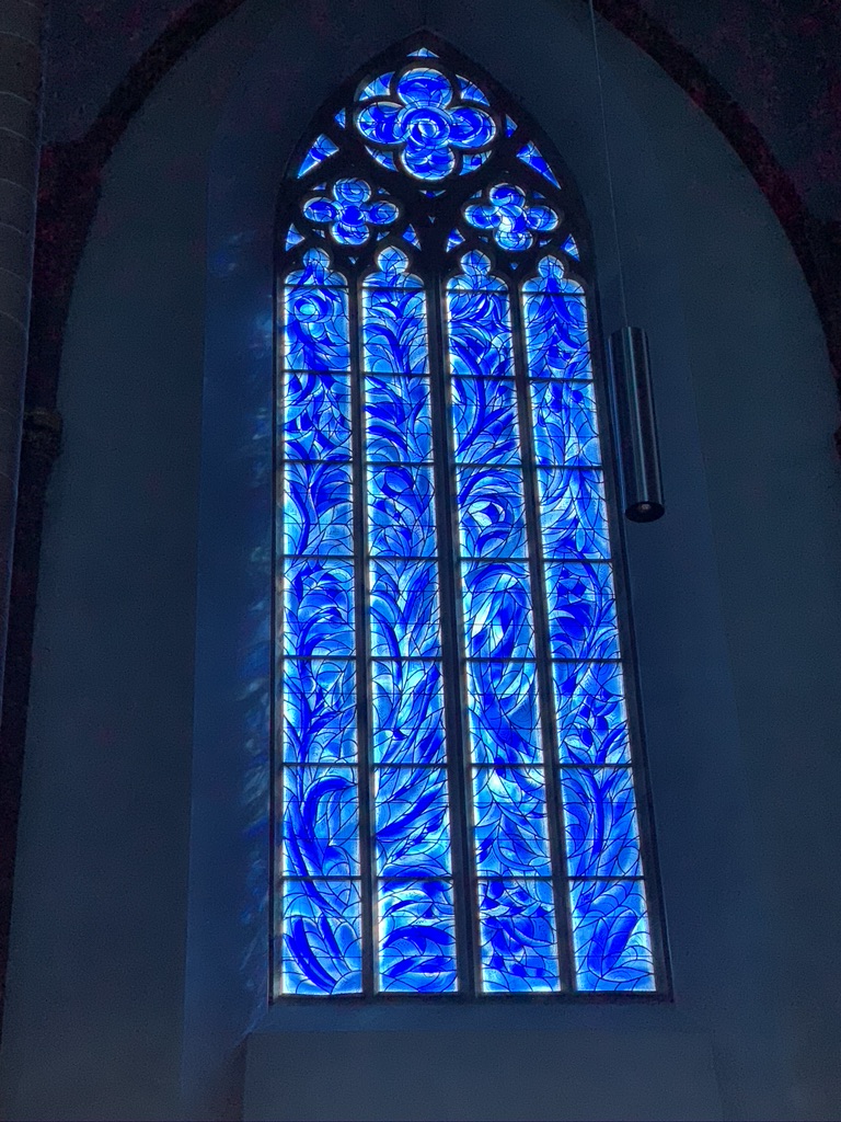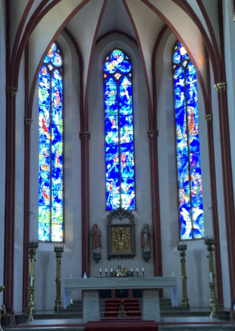 For me, a highlight was the Chagall stained glass windows – the modernity of the windows’ design along with the Impressionistic-like blues, set in a church built in 1335, was mesmerizing. Chagall was from Russia and was Jewish, and one of his reasons for taking this project on late in his life (he died at age 97 shortly after finishing the last window) was to elevate the idea of international understanding and Jewish-Christian relationships. Very cool.